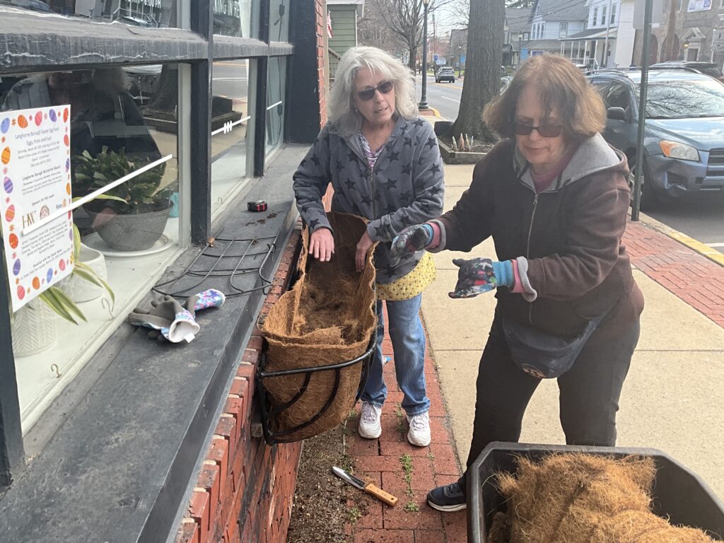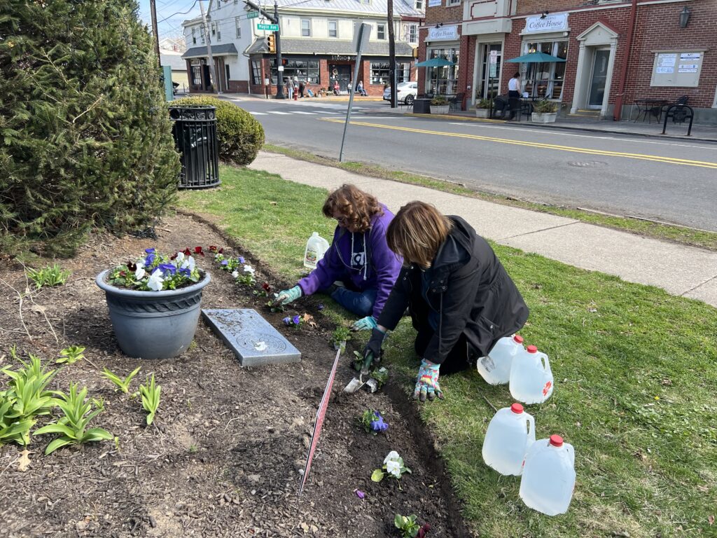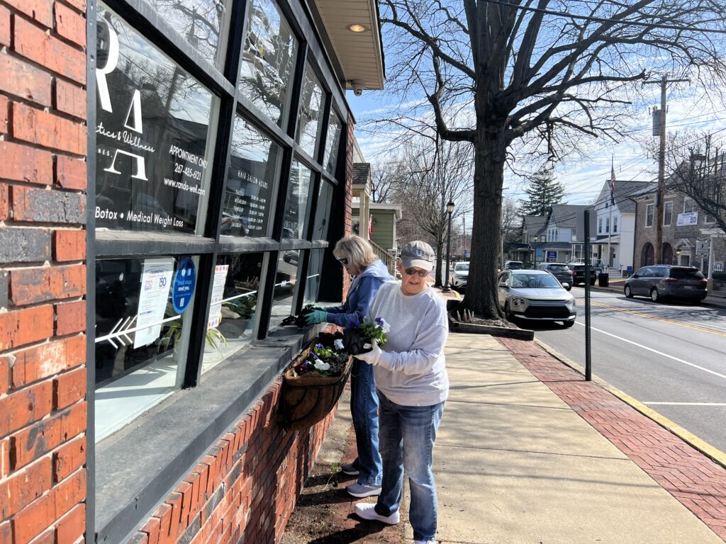 Beautiful spring weather for planting the haybaskets in town. We planted red, white and blue pansies in our haybaskets this week. We are getting ready for our 150th celebration. More pictures to come in the coming year.